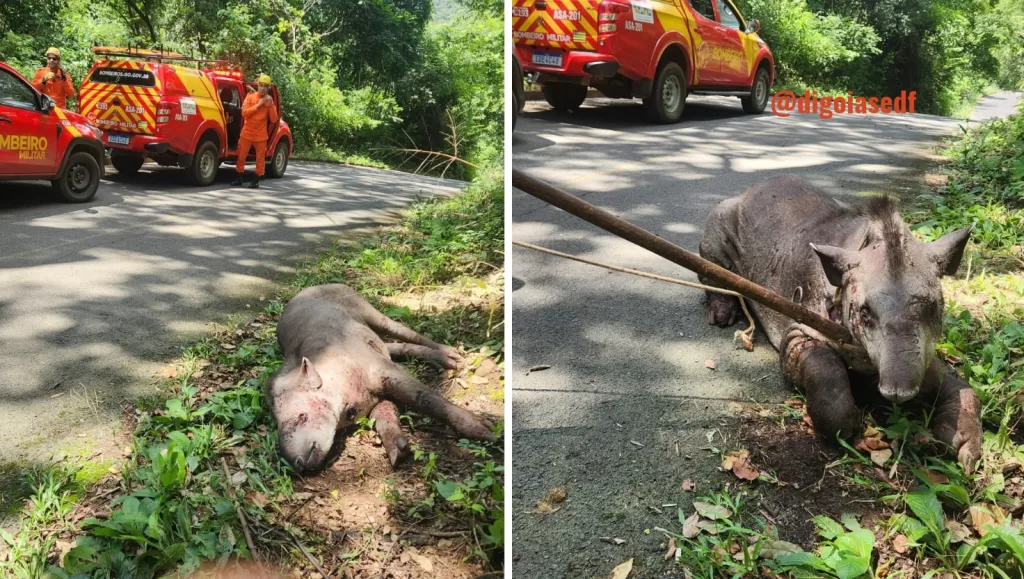 Ao chegarem ao local, os bombeiros encontraram o animal — o maior mamífero terrestre da América do Sul — apresentando sinais severos de debilidade. A anta possuía: