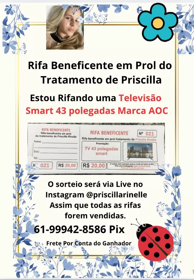 Além do evento presencial, também está sendo promovida uma rifa beneficente, que sorteará uma TV Smart de 43 polegadas da marca AOC. Cada número custa R$ 20,00, e o sorteio será realizado ao vivo pelo Instagram @priscillarinelle, assim que todas as rifas forem vendidas. O frete ficará por conta do ganhador.