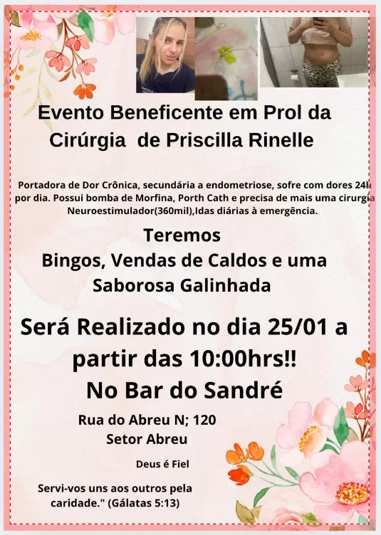 A solidariedade está mobilizando a comunidade em prol do tratamento de saúde de Priscilla Rinelle, que enfrenta dores crônicas severas em decorrência da endometriose. Familiares e amigos estão promovendo um evento beneficente e uma rifa solidária com o objetivo de arrecadar recursos para custear uma cirurgia de alta complexidade.