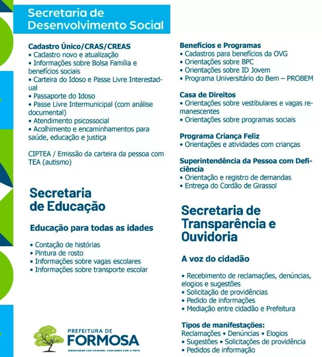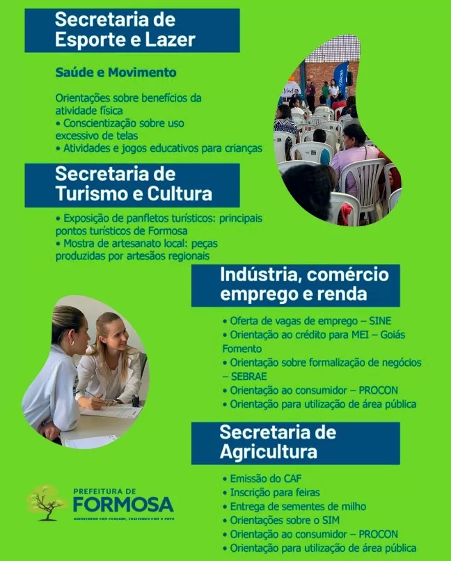 A Prefeitura de Formosa promove, neste sábado, 28 de fevereiro, a partir das 8h, mais uma edição do programa Prefeitura de Canto a Canto, um grande mutirão de serviços públicos gratuitos que leva atendimento direto às comunidades.